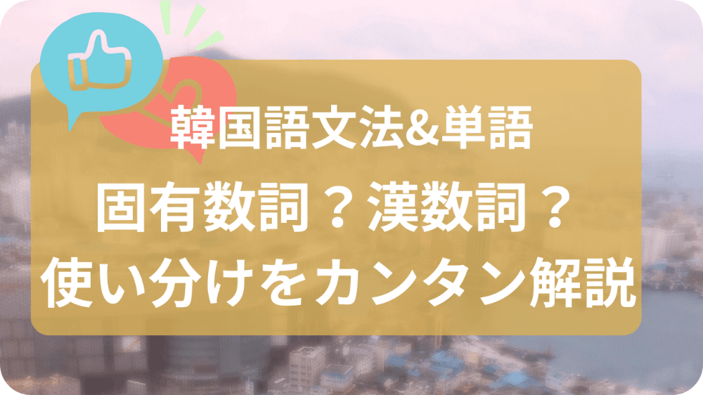 - 韓国語の数字には、「固有数詞」と「漢数詞」の2種類がある。